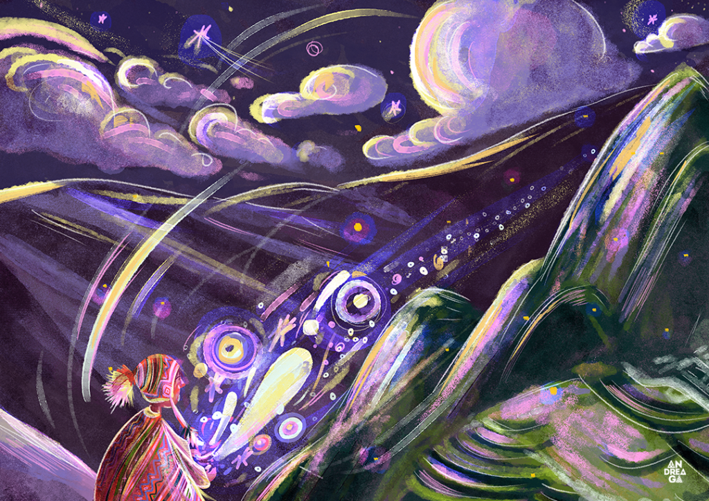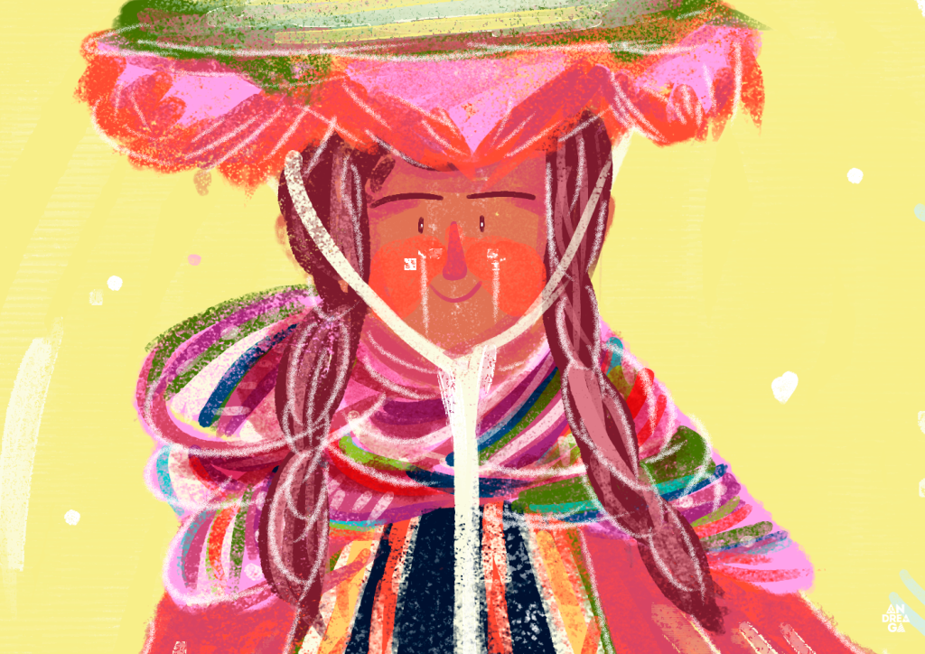 Cuando estaba en la universidad hace ya varios años atrás, recuerdo que los profesores nos enseñaban a tener nuestra identidad a investigar sobre la cultura de nuestro país y volcarlo a los diseños e ilustraciones. De hecho, nos hacían realizar ilustraciones en acuarela de animales oriundos de nuestro país y para ilustración editorial usábamos ejemplos de obras nacionales, al principio no entendía por qué nos colocaban esos temas y luego de varios años por el 2016 me acordé de lo que nos habían enseñado los profesores de la carrera y dije: «Voy a ilustrar sobre mi país, pero con mi estilo de ilustración y colocarlo en mi portafolio online». Recuerdo que el proyecto lo llamé identidad, estaba en una transición de mi estilo e hice 3 ilustraciones, 2 con motivos de la sierra y uno con motivo de la selva.