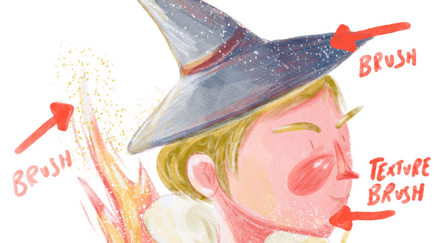 Puedes utilizar los pinceles gratuitos para Photoshop y Procreate como en estas ilustraciones donde puse un poco de textura con el pincel en los bordes y para iluminación, también combinando con el blanco y se vea la textura de puntos.