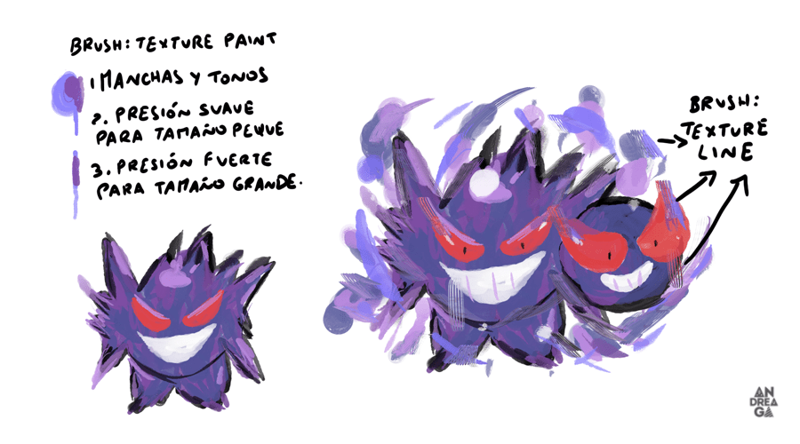 3. Pokemón favorito o que puedas darle una nueva imagen: Usé los pinceles de la colección Andreaga para Infinite Painter del pack texture.