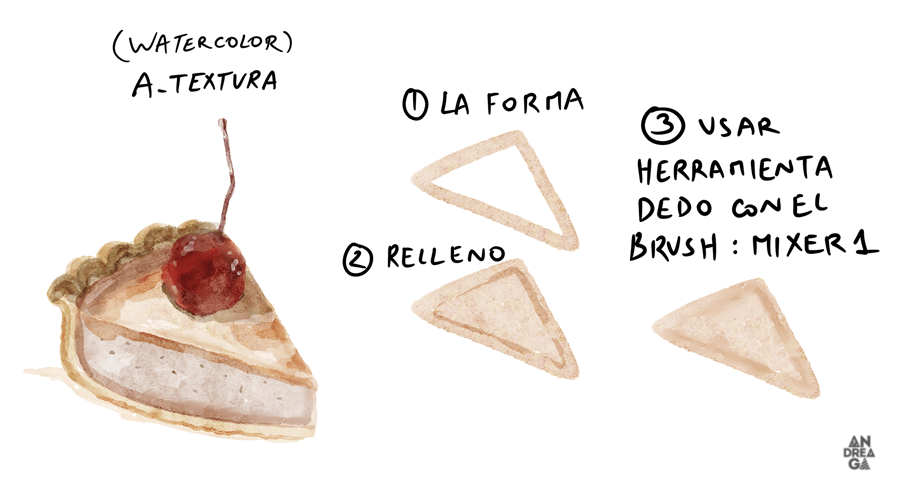 En este caso utilicé el programa de ilustración digital de Procreate y los pinceles de acuarela de la colección Andreaga donde viene la clase desde 0 para acuarela.