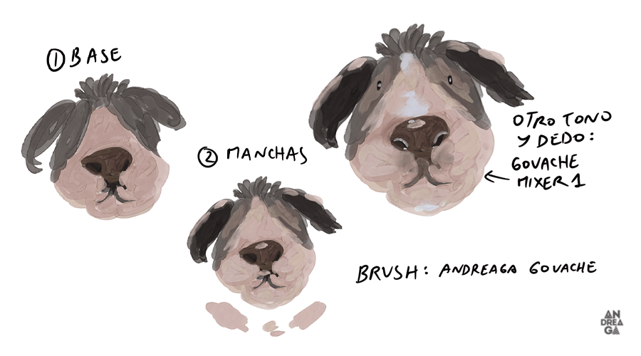 2. Avatares de perritos o gatos: Solo concéntrate en dibujar las caras de tu animal preferido, verás que es una idea de dibujo y ejercicio genial. Los pinceles que usé fueron de la colección Andreaga gouache para Procreate, también viene la clase desde 0 para aprender a pintar esta técnica.
