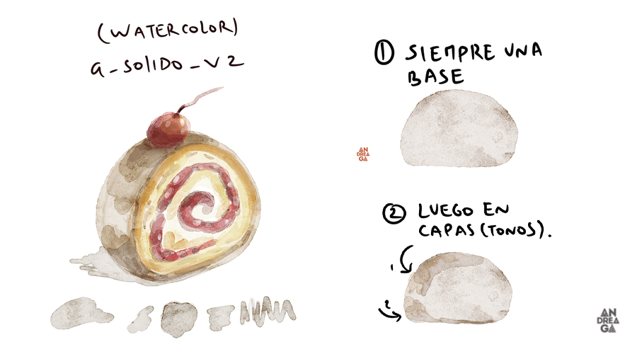 Postres: Una de las cosas que he descubierto en este tiempo es disfrutar de ilustrar postres. El estudio que puedes hacer con ellos es muy satisfactorio, aprendes de luces, sombras y técnicas.