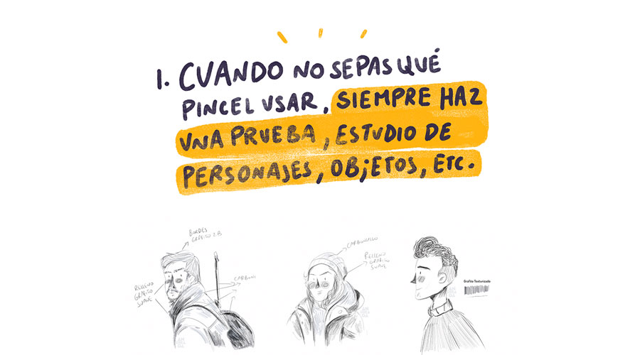 ¿Cómo usar los pinceles? ¿Cómo empezar a tener una mejor técnica en ilustración? Esta es una de las preguntas que siempre hacen en ilustración, sobre todo en el tema digital. Como primer consejo siempre el pack de pincelesque tengas debes probarlos uno por uno y si puedes dibujar personajes, objetos con cada pincel mucho mejor, porque de esa manera sabrás cuál pincel te conviene para tu estilo o utilizar una nueva técnica. Aquí te dejo un ejercicio de probar pincelesque hice y en esta Masterclass podrás saber más sobre el tema de usar pinceles en Photoshop y si deseas aprender acuarela digitalte aconsejo el tema de ¿Cómo pintar con acuarela digital? Esto aplica para los programas de Photoshop, Fresco, Clip Studio Paint, Procreate y programas que tengan herraemienta mezclador y dedo o difusor sobre todo.