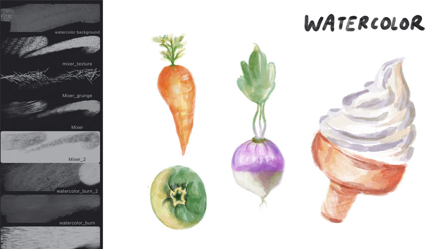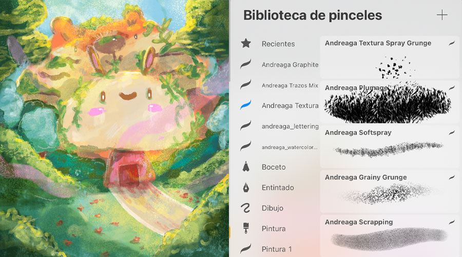 Colección completa de Brushes para Procreate: Todos los packs de acuarela, textura, lettering, pencil y mix gouache, además de 2 tutoriales exclusivos desde 0 para aprender acuarela y gouache digital.