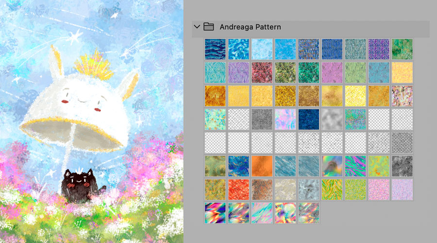 Set de Patrones para tus ilustraciones (68 patrones) Estos te ayudarán a dar efectos a tus ilustraciones (impresionista, oro, plata, acuarela, bronce, natural, holográfico, etc)