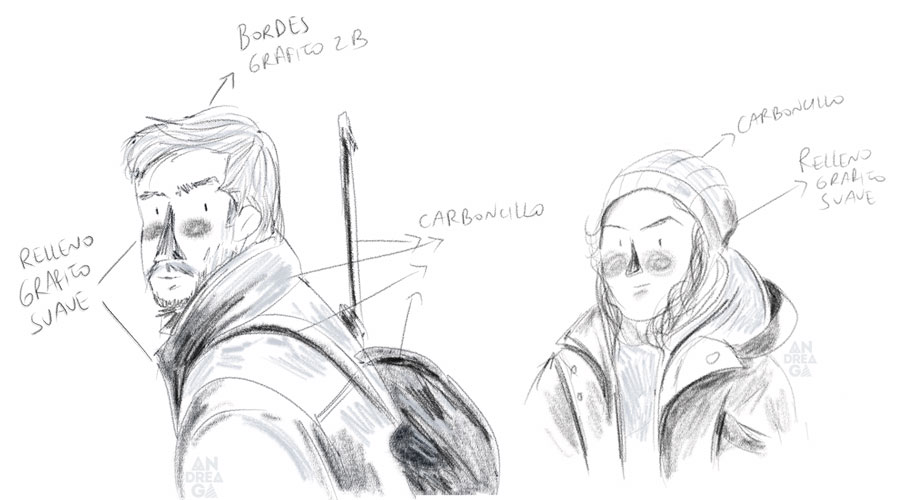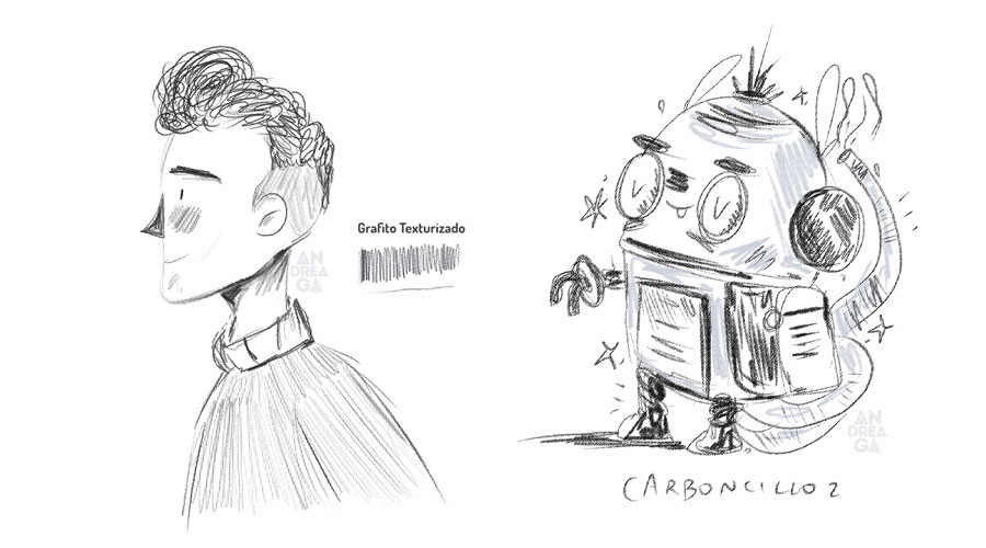 Estos sketches los realicé en Procreate con el pincel grafito 2b Andreaga y pincel relleno suave para sombras y pintado. Puedes conseguirlo en el pack individual o en la colección completa que hice para Procreate donde vienen más pinceles para técnicas como gouache and mix, lettering, texture, watercolor y otros.