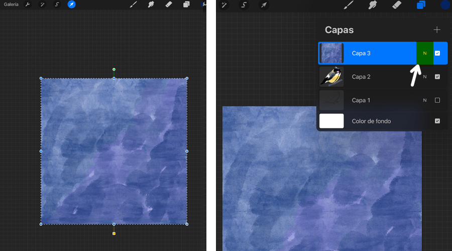 3. Puedes colocar bien tu textura y luego vamos a capas y hacemos clic en la N.