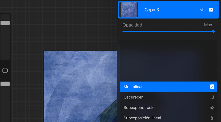 4. Aquí elegimos un modo de fusión como en Photoshop y puedes bajar la opacidad también