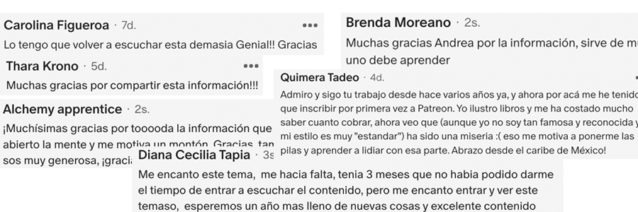 Descarga todos los episodios en MP3, PDF y MP4. Cada episodio reúne lo más valioso que aprendí en años de ilustración, cosas que me hubiera gustado saber desde el inicio. Hoy puedes acceder a todo ese contenido y escucharlo cuando quieras.